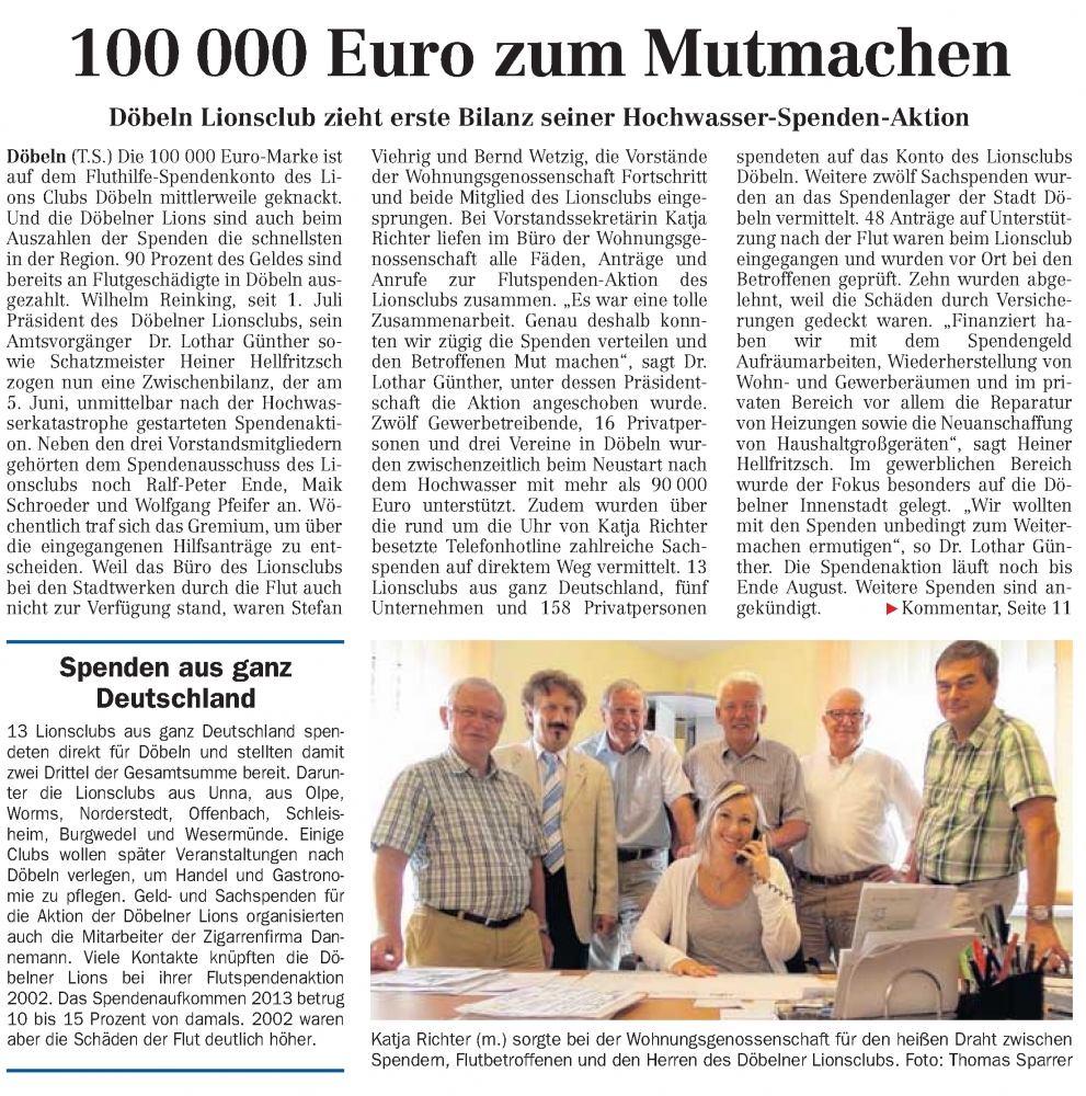 Zur schnellen Unterstützung der Betroffenen hat der LIONS CLUB Döbeln ein Spendenkonto eingerichtet.